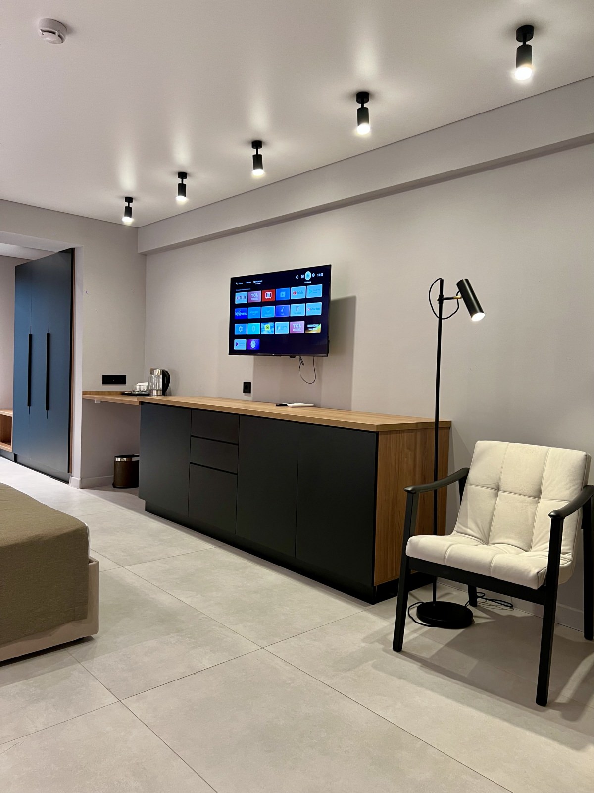 Площадь номера - 40 кв.м. 2 осн. места. 1 доп. место. Балкон. Мебель: вешалка, диван, зеркало, кресло, кровати односпальные /одна двуспальная кровать, прикроватные тумбочки, столик журнальный, шкаф. Оборудование: кондиционер, пляжные полотенца, сейф, телевизор, холодильник, чайная станция. Санузел: с душем, тапочки, туалетные принадлежности, фен, халат. Сервис: Wi-Fi бесплатно, смена полотенец, смена постельного белья, уборка номера.